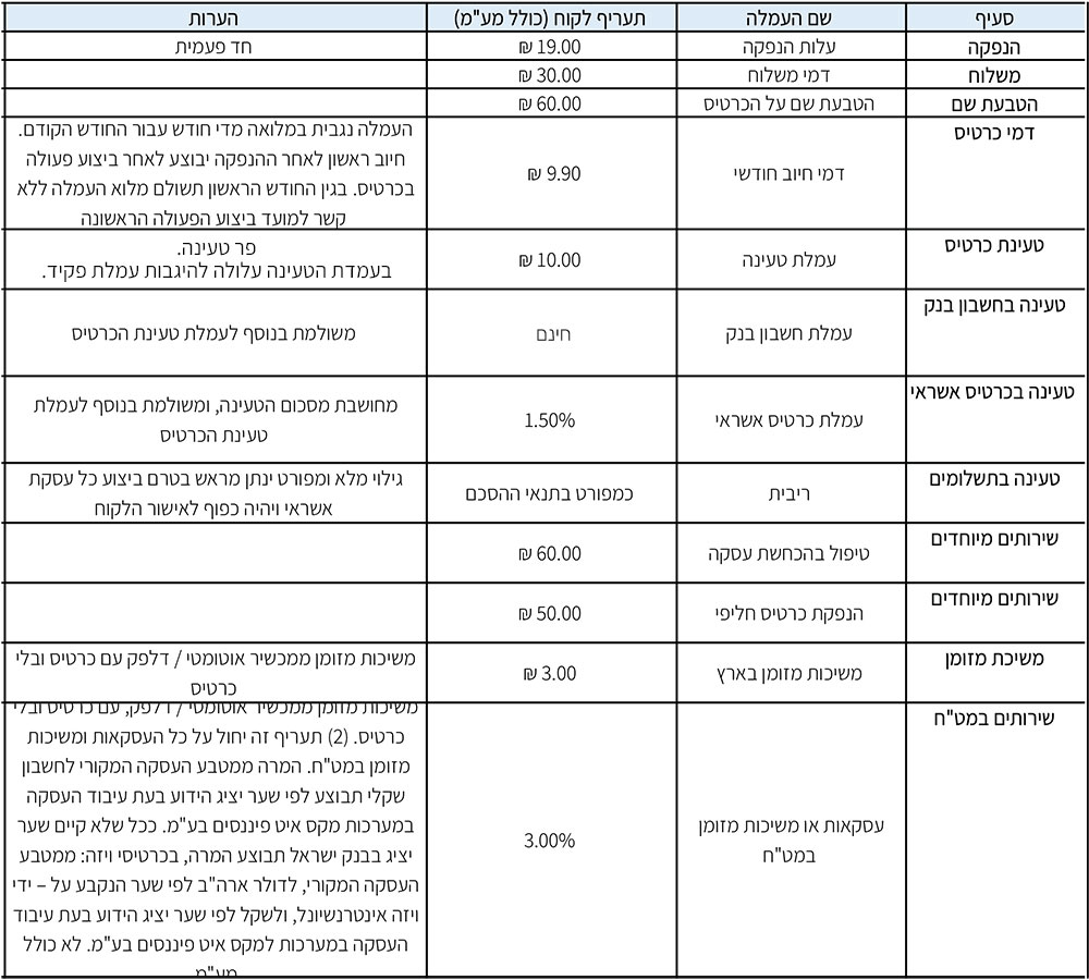 ** לחברה שמורה הזכות לשנות את התעריפים הנוקטים לעיל מעת לעת על פי שיקול דעתה. הודעה בדבר שינוי תנאי ההסכם, וכן שינוי בתעריפים תמסר 7 ימים מראש.